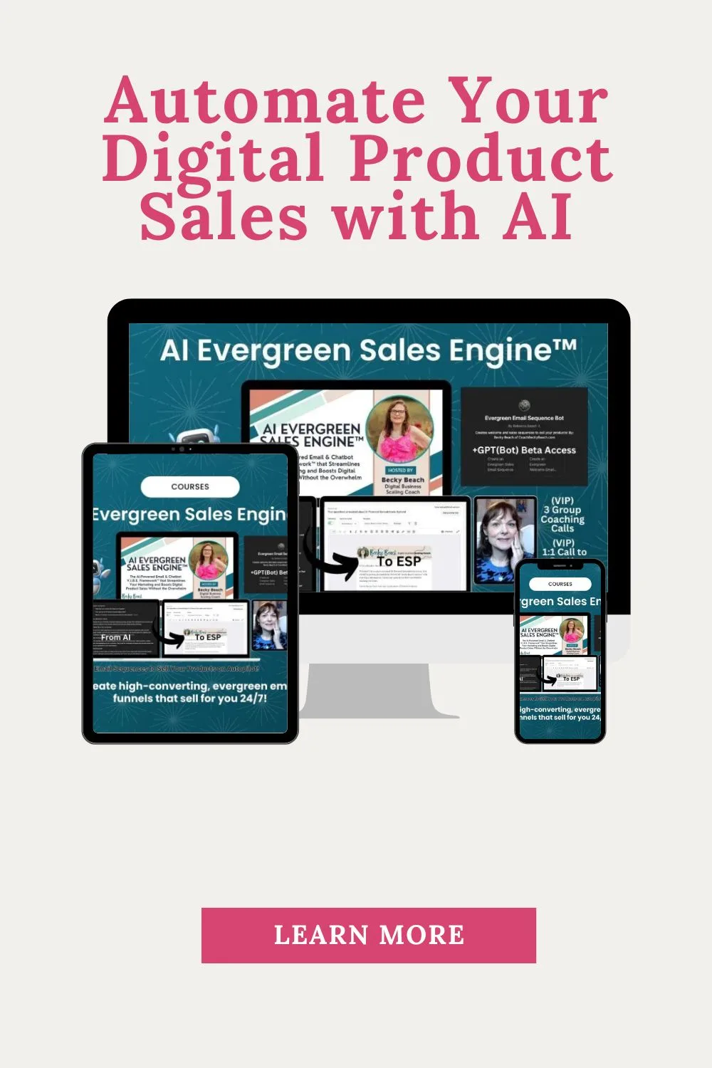 If you’re ready to simplify your marketing, grow your sales, and ditch the stress of doing it all manually, AI Evergreen Sales Engine™ is the shortcut you’ve been waiting for.